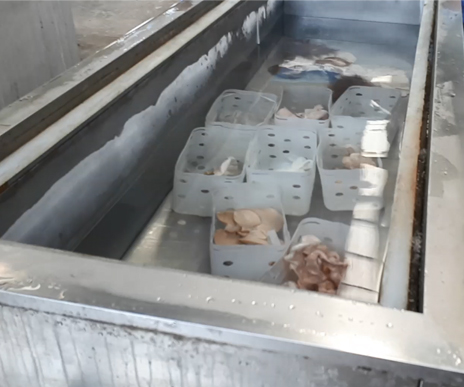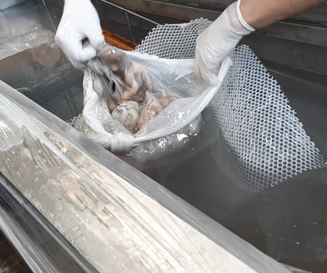 در این مرحله یک محلول آبگیری مانند استون جایگزین آب خارج و داخل سلولی و قسمت زیادی از چربی بافت می شود. در مرحله چهارم پلمیر مناسب جایگزین محلول آبگیری می شود.